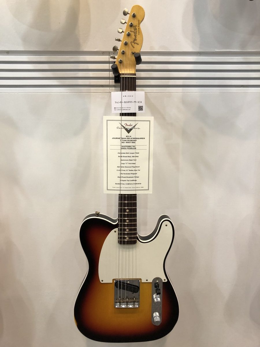 ジャーニーマンレリックが施されたEsquire。俗に言うエスクワイヤー・カスタムです。柾目ネックにミディアムジャンボフレット、9.5Radiusの所謂モダンスペック。ピックアップは手巻きのブロードキャスターとの事でした。かっこいい。